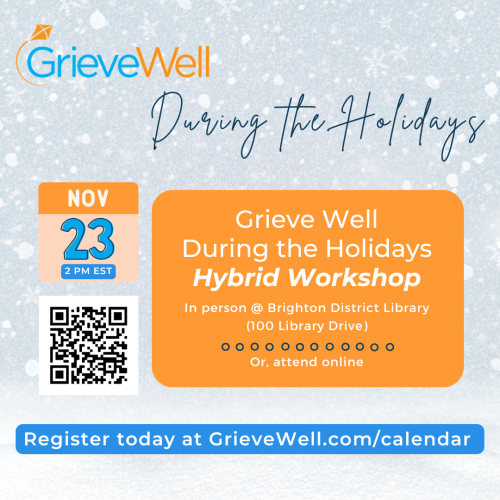 This workshop will be offered in a hybrid format. To attend online, please register here with Livestorm. To attend in person at the Bright District Library (100 Library Dr, Brighton, MI 48116), please register at https://grievewell.nationbuilder.com/grief_holidays_nov2025_inperson.