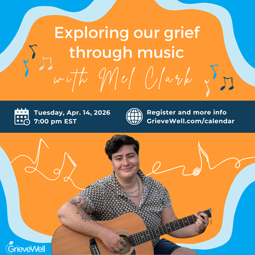 Mel Clark (they/them) is a board certified Music Therapist and owner/operator of Backwoods Music Therapy in Ann Arbor, MI. Mel has years of experience in hospice and bereavement care and has designed and led several Music Therapy based grief support groups. Mel has a passion for utilizing music as a guide through grief and loss of all kinds. Music can be a powerful tool for healing and expression when words aren’t enough. Mel will provide a space to connect and explore grief through music.