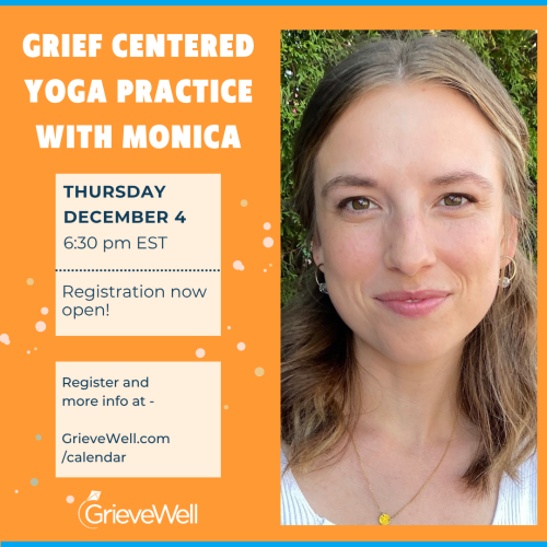 Join Monica for a free 60-minute grief centered yoga practice, open to all levels.