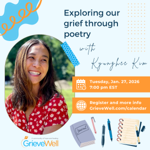 Exploring our grief through poetry with Kyunghee Kim Kyunghee Kim is a Korean American author, writing coach for ... 27 Jan 7:00 pm - 8:00 pm